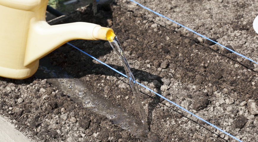 На случай, если при посадке семян земля недостаточно увлажненная, ее следует очень осторожно полить