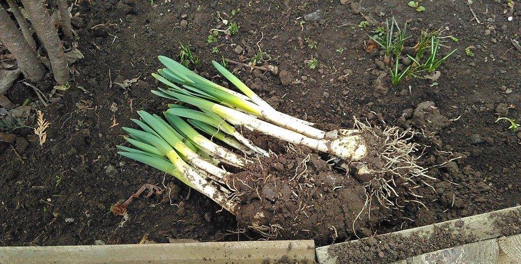 Выкапывать луковичные цветы можно по завершении этапа цветения, когда листья полностью пожелтеют и начнут легко отделяться. Сначала клубни нарциссов просушивают в хорошо вентилируемом помещении, куда не попадают прямые солнечные лучи. Затем проводится чистка луковиц: удаляются неплотно прилегающие и сухие чешуи.