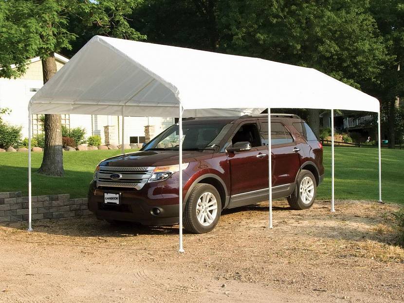 - Расположение на участке. Рекомендуется возводить навес максимально близко к въезду.
