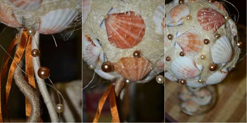 - Сверху дерева нужно надеть шар, служащий основой. Если его нет, можно использовать снова пенопласт или флористический оазис. Главное – придать ему наиболее округлую форму.