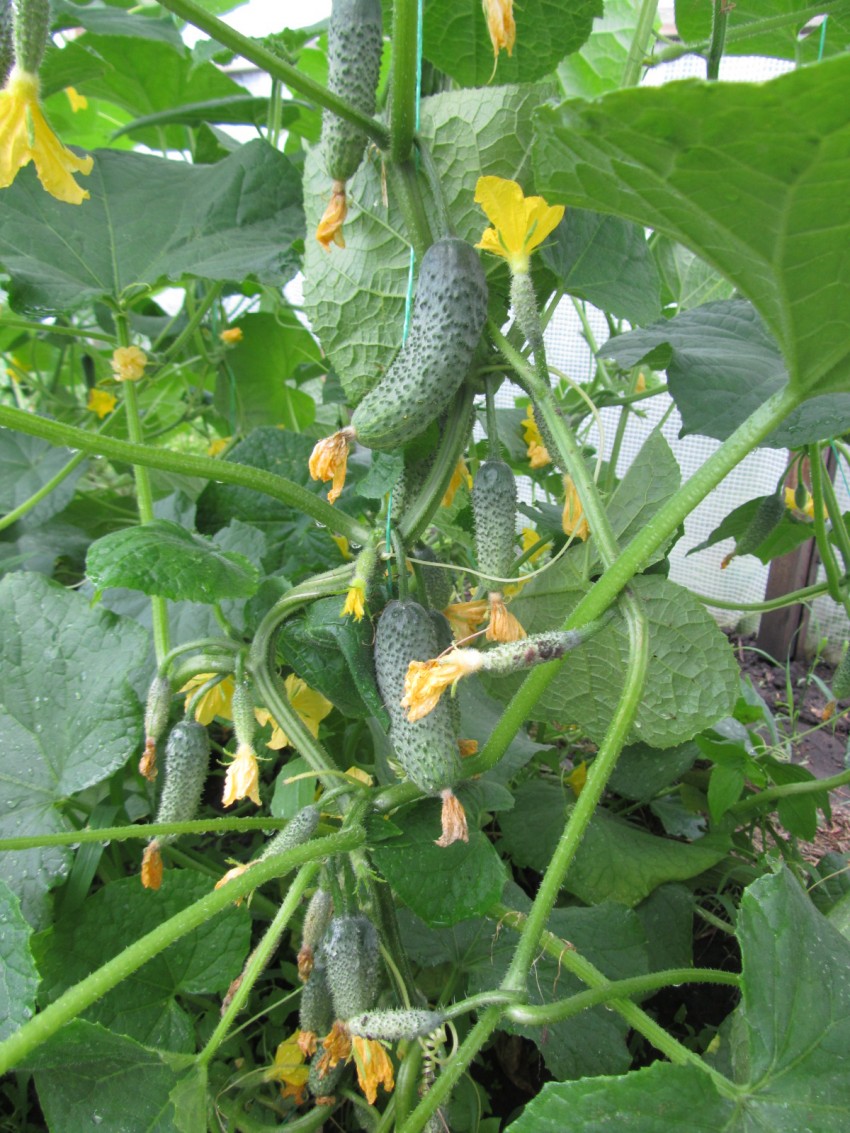 Нижние листья у кустов желтеют, увеличиваются и плохо опыляются цветки при нехватке азота. Однако когда постоянно подкармливать огурцы удобрениями, содержащими этот микроэлемент, растения обильно покрываются листвой, но завязи образуется мало.