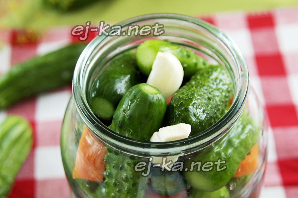Маринованные огурцы с овощной начинкой. Рецепт с фото