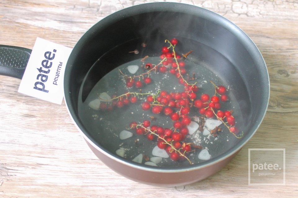 Опустите в маринад гроздья красной смородины и протомите их там около минуты.