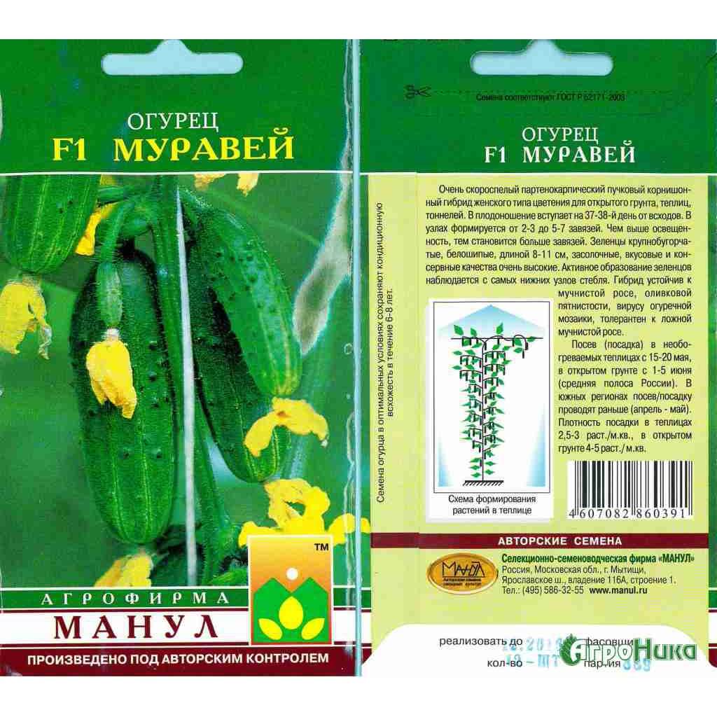 Муравей f1 огурец — это весьма скороспелый партенокарпический пучковый корнишонный гибрид женского вида цветения, рассчитанный для выращивания в условиях открытого грунта, а кроме того на грядах в оранжереях и тоннелях.