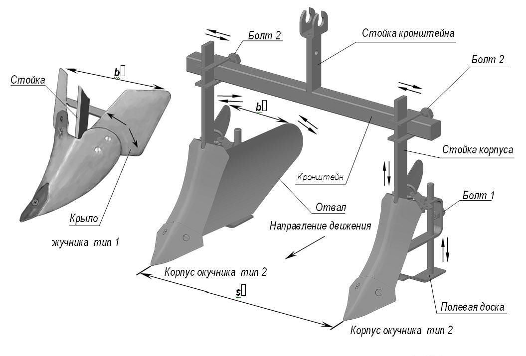 Двухкорпусный плуг для мотоблока с фрезами чаще всего используется для вспашки