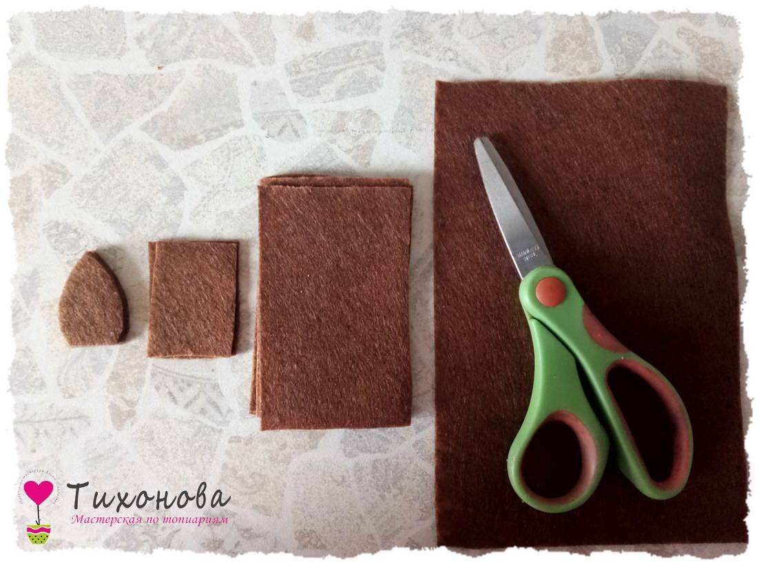 - Из фетра. Топиарий из фетра выглядит очень красиво и привлекательно. С таким материалом очень легко работать, поэтому к процессу можно подключить детское умение и фантазию.