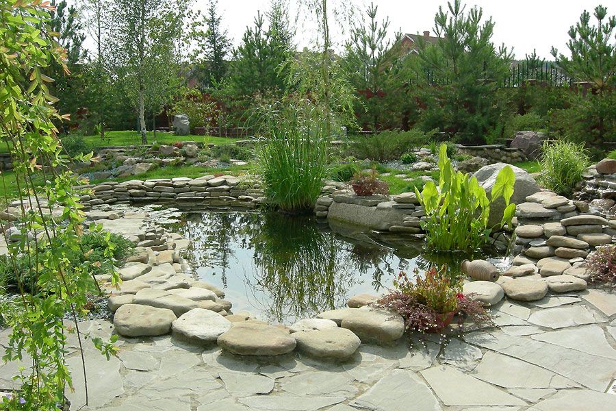 Тропинки не должны быть ровными и ухоженными. Они скорее напоминают дорожку, по которой практически никто не ходит. В этом и помогают гравий, мелкий гранит, деревянные спилы, и прочее. Материалы выкладываются на значительном расстоянии друг от друга, а пространство засаживается травами (тимьян, зверобой или трава для газона).