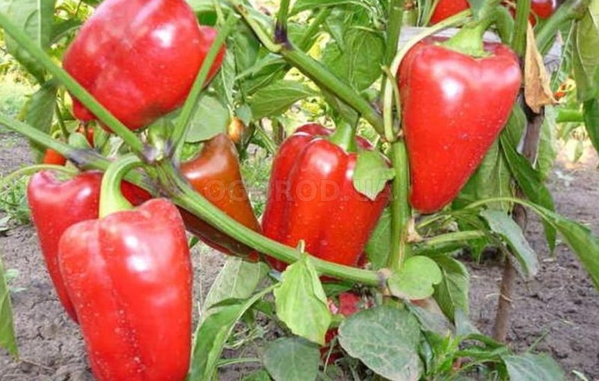 Данная гибридная форма сладкого перца привлекает внимание конусовидной формой, темно-красным окрасом. Мякоть плотная, толщина стенок 7-8 мм, отличается сочностью и сладостью. Учитывая высокорослость растения, при его выращивании потребуется опора.