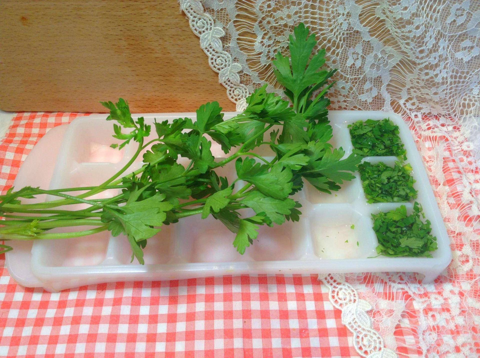 Когда необходимо заготовить небольшое количество петрушки для порционных блюд, можно взять за основу предложенный рецепт. Для этого нужно воспользоваться формочками для льда. Трава после заморозки превратится в пряные кубики для заправки первых блюд, рагу, запеканок.