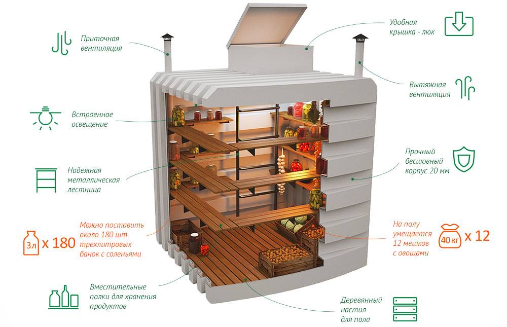 В то же время в погребе, выполненном из пластика, не всегда можно наверняка быть уверенным, что в ходе производства было использовано экологически чистое сырье. Без соответствующих гарантий от производителя всегда есть вероятность негативного воздействия токсинов на хранящиеся продукты. Более того, перепады температур и режима влажности могут спровоцировать разрушение пластиковой конструкции, что также может стать причиной процессов распада и выделения нежелательных веществ.