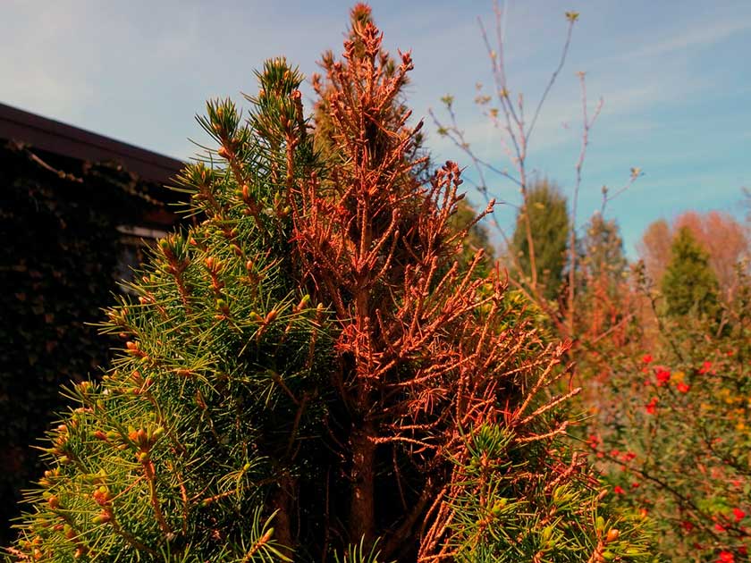 Пройдет немного времени – и растение зазеленеет. Чтобы подобная беда более не беспокоила тую, по окончании зимы ее следует прикрыть от прямых лучей каким-то темным, отлично пропускающим поток воздуха, уплотнителем.Страдают все хвойники также от грибковых болезней.
