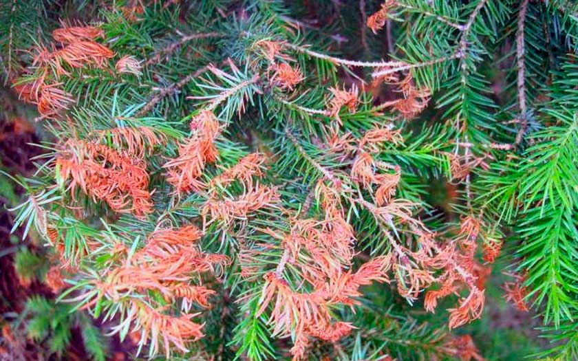После высадки и на протяжении сезона тую следует лечить разными бактерицидными настоями. За растением нужно следить, вовремя вырезать поврежденные и желтые высохшие ветки.