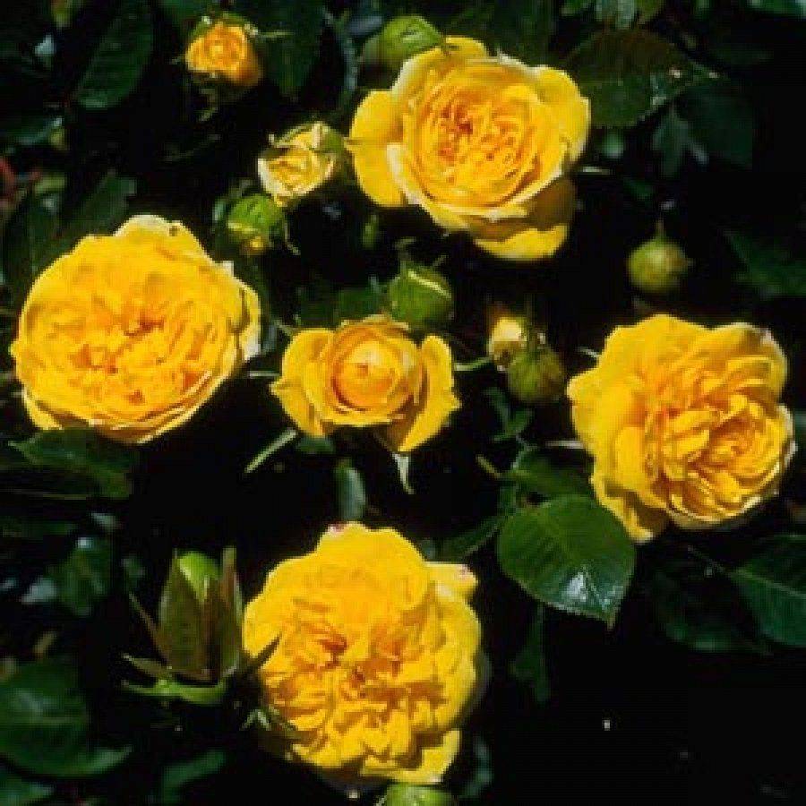 Раскидистый куст вырастает до 50-60 см в ширину и высоту. Цветет продолжительно, полумахровыми ароматными цветками желтого, оранжевого, кремового цвета и их разнообразных оттенков. Растение устойчиво к морозам и инфекциям.