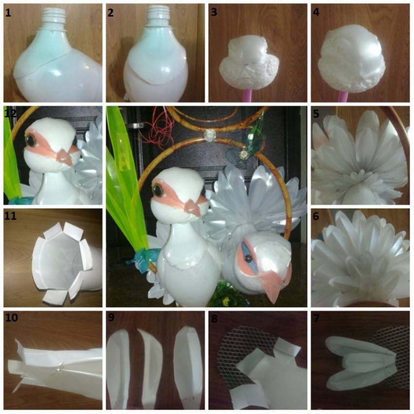 Пластиковая посуда является достаточно удобным в обработке материалом. Сложность выполнения поделок определяется мастерством и опытностью автора. Изучить пошаговую инструкцию изготовления поделок из пластиковых бутылок можно на тематических сайтах.