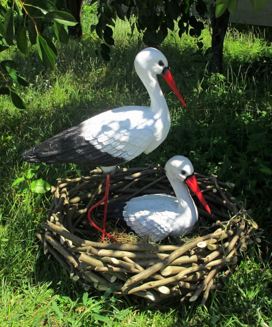 Также для увеличения пластичности в бетон вводят небольшое количество клея ПВА, жидкого стекла. На поверхность готовых фигур с целью придания гладкости наносят шпаклевку, выбирая вариант, устойчивый при изменяющихся атмосферных условиях. Бетонные скульптуры получаются выразительными и могут размещаться в разных уголках дачного участка.