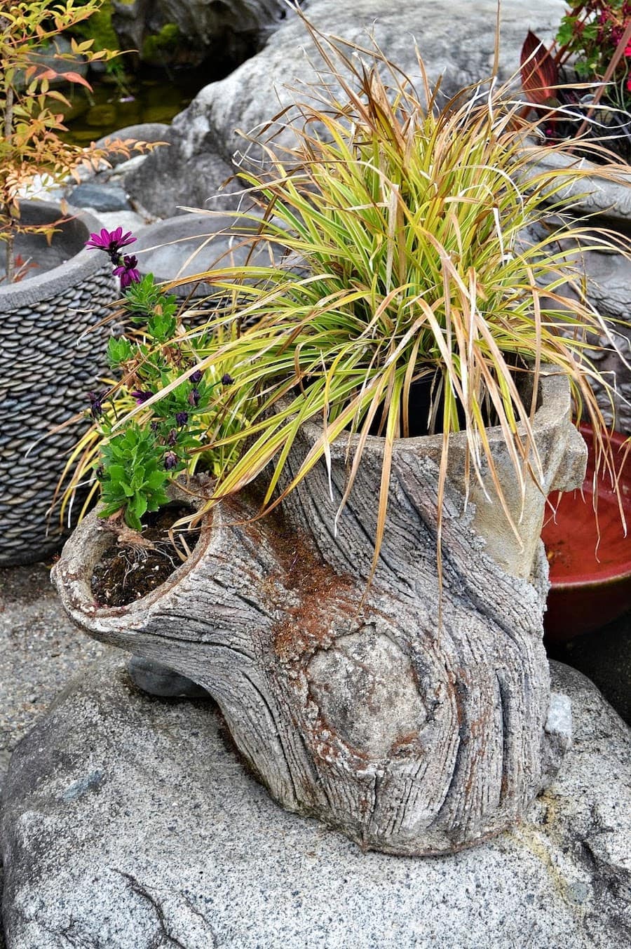 Умное решение: на газон положить перевернутый на бок кувшин, углубить его в землю и насыпать рядом мелкого камня, а затем украсить эту композицию невысокими цветами в тон, таким образом, создастся приятная атмосфера волшебства.
