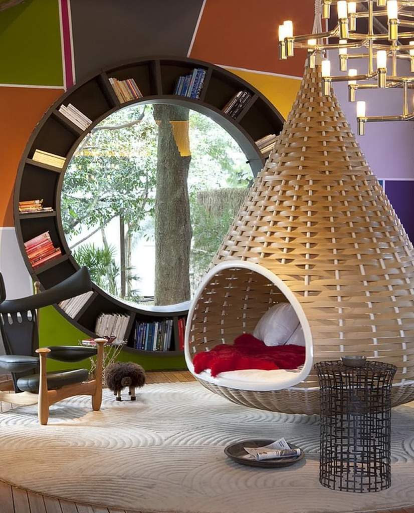 Кресло-кокон. Этот вид кресла с уверенностью можно назвать мечтой интроверта. Большая его часть скрыта от всеобщего обозрения стенками.