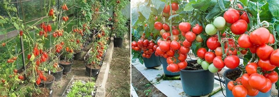 В теплице выращивают как детерминантные (низкорослые), так и индетерминантные сорта томатов. Которые плодоносят до морозов.