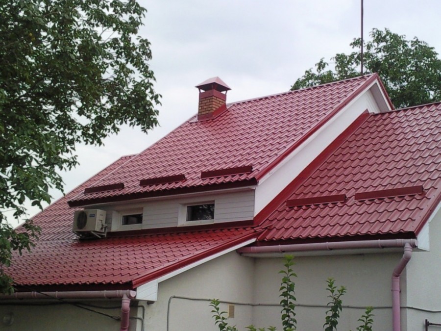 Затем проводят вывод самой трубу через поверхность кровли. Как только вывод будет сделан, металлический лист на кровле жёстко фиксируется. При необходимости, он дополнительно заводится под кровельный край.