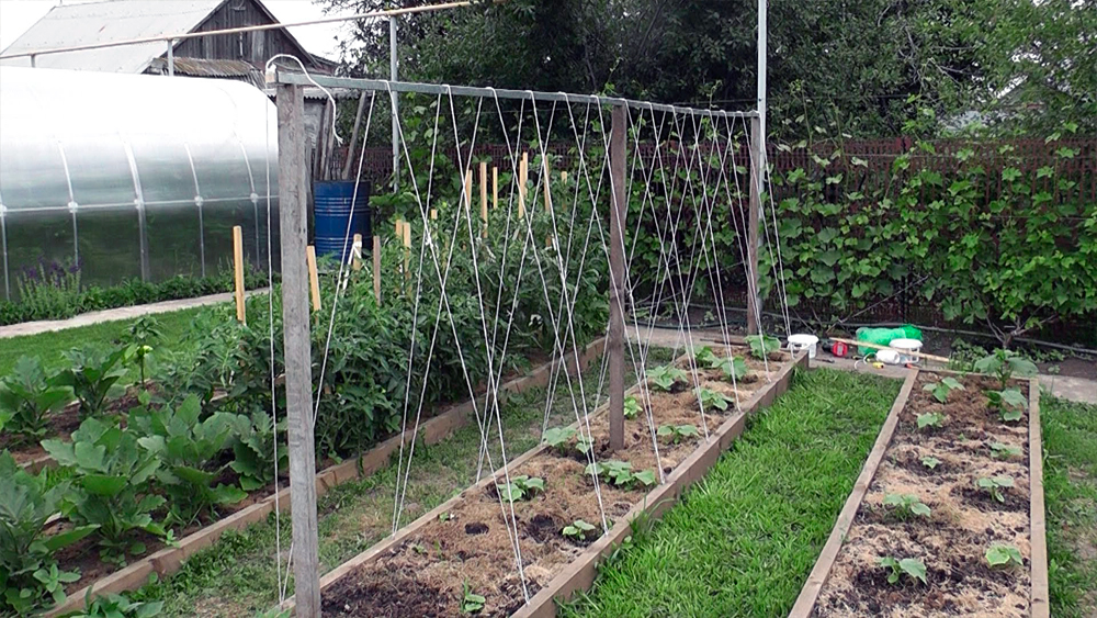 - Шпалеры можно заменить натянутыми веревками, к которым привязывается центральный стебель, а затем боковые.
