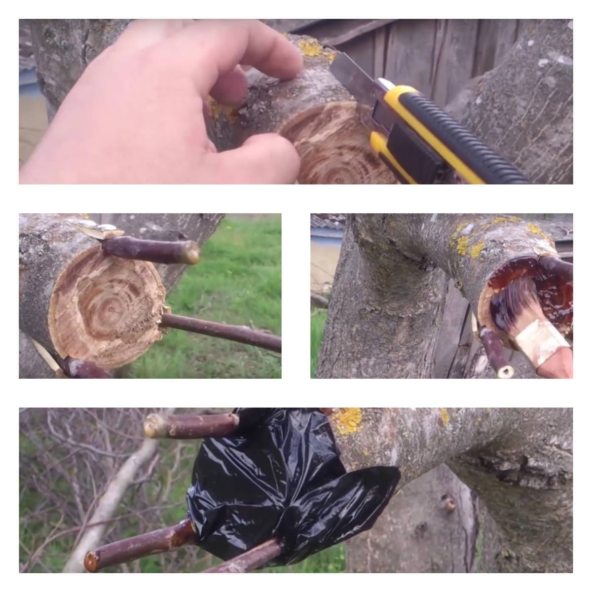 Выполняется окулировка. Для этого у щитка снимается вся древесина, после чего выполняется присоединение глазка. Можно также выполнить прививку черенком, Проблема возникает только в том случае, если различается диаметр стволов. Достаточно сделать продольный разрез и выпустить сок