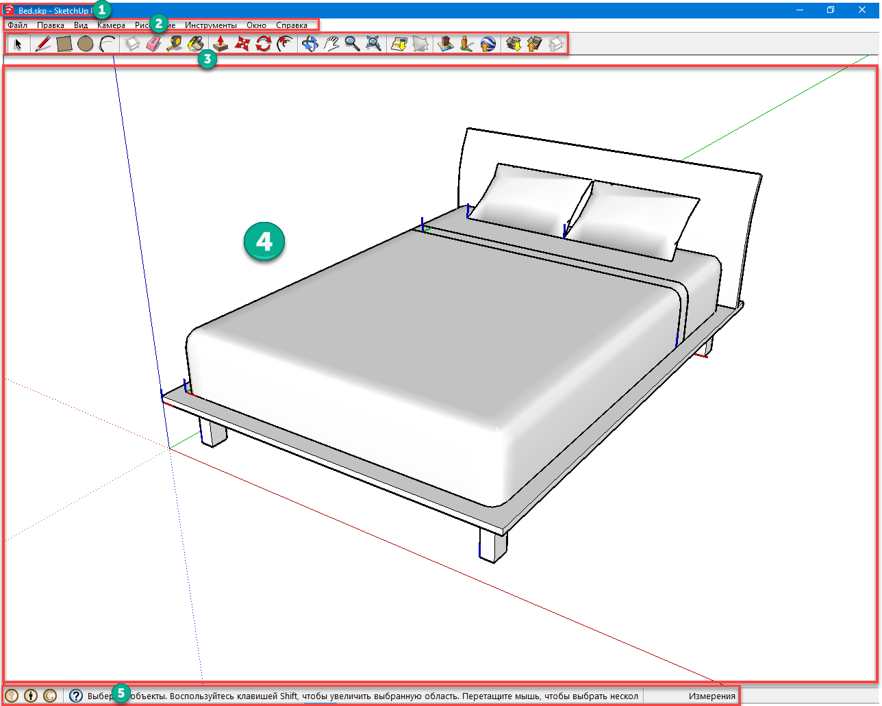 Подкупает и то, что программа может подсказывать вам дальнейшие действия. Эта функция хороша для тех, кто только скачал SketchUp бесплатно и начал осваивать программу.