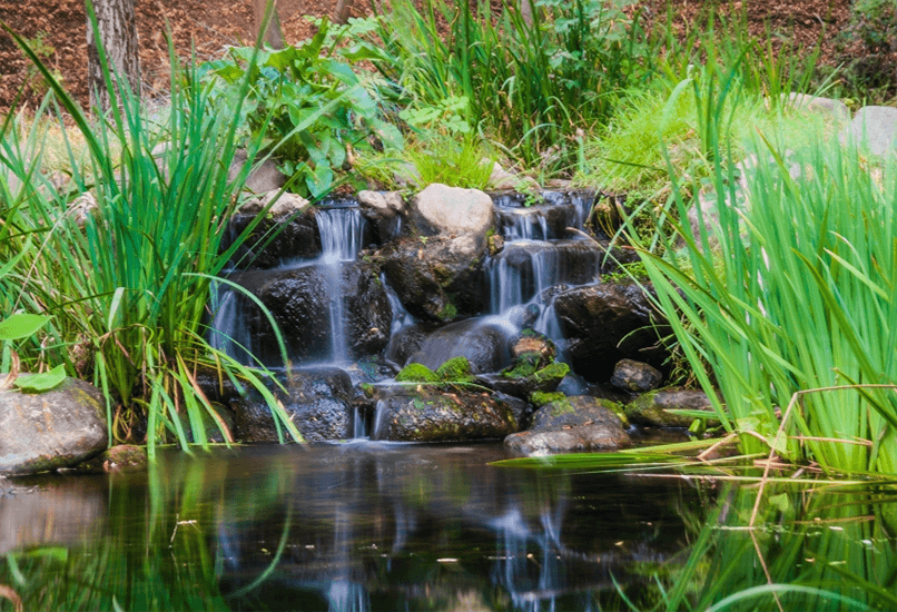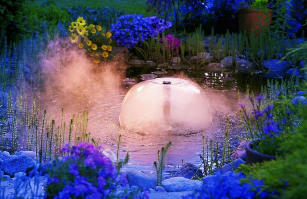 Использование насоса циркуляции и очистки воды позволяет организовать ручейки, водопады, замысловатые вливания-переливания. Водоем оживает, журчит, играет на солнце.