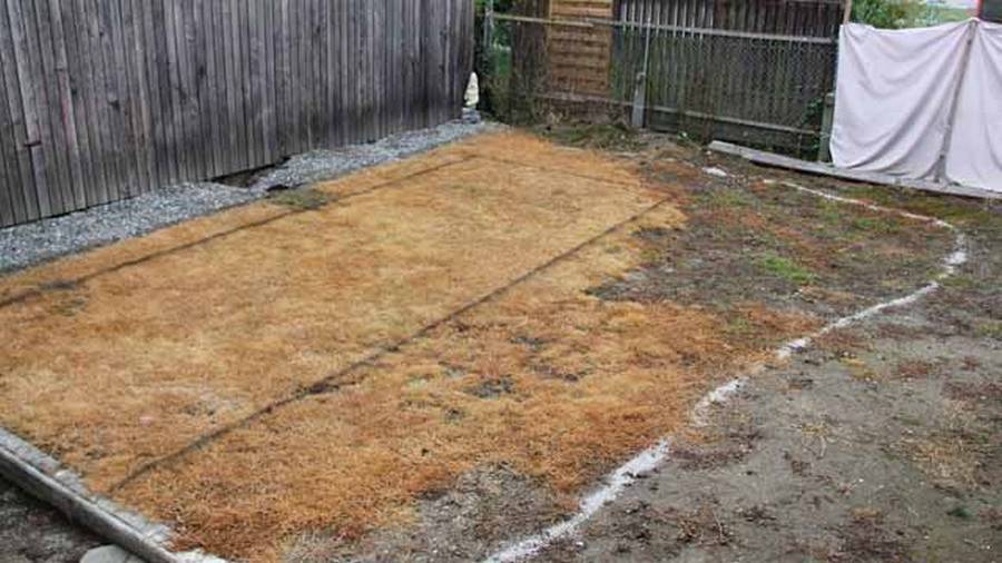 - По контурам выкопайте ров, но неглубокий – примерно на штык лопаты. Грунт и дёрн не выбрасываем.