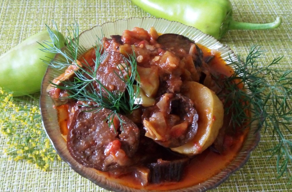 Рататуй по-турецки с мясом, баклажанами, кабачками и перцем