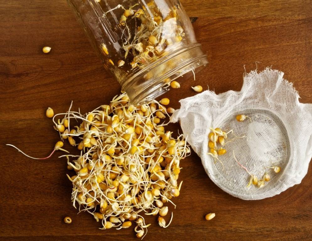 Также можно прорастить семена кукурузы. Процедура значительно ускоряет появление всходов, а также помогает сразу выявить нежизнеспособные семена (они просто не прорастут и сеять их не нужно). Для проращивания нужно положить семена на ватные диски или хлопчатобумажную ткань, накрыть этим же материалом, увлажнить и положить в полиэтиленовый пакет, завязать, оставив воздух. После этого нужно положить пакет в теплое место (около 24-26 градусов тепла). Как правило, для прорастания требуется 2-3 суток. Экземпляры, которые не проросли за 3-4 дня можно отбраковать. При этом при проращивании нужно каждый день проверять их, если появилась плесень, нужно сразу промыть и поместить на новую ткань.