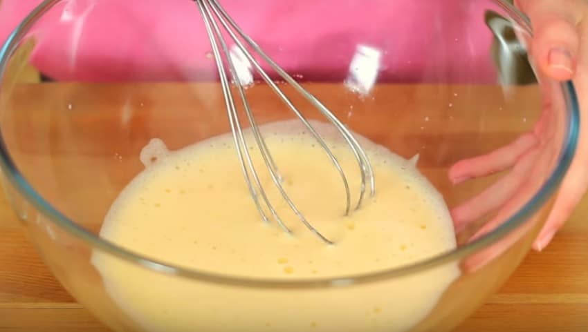 - Довести смесь до однородного состояния (венчиком или миксером).