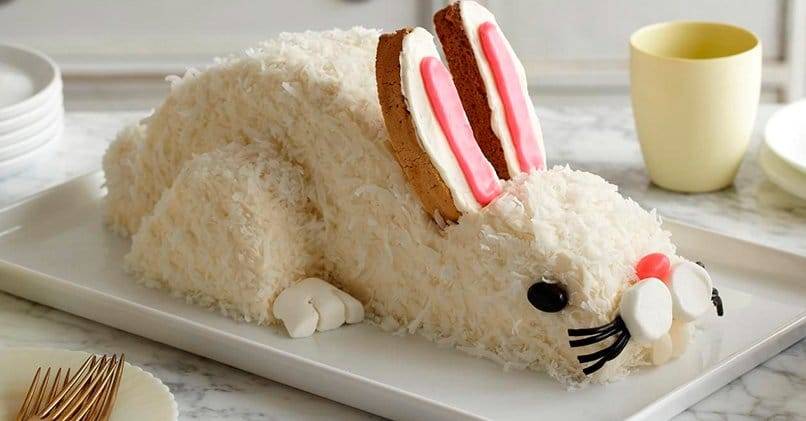 Сверху весь кролик смазывается майонезом. На крупной терке натирается белок вареного яйца и посыпается на майонезный слой, образуя заячью шубку. Уши сделаем из 2 кусочков каравая, намажем их маслом и приделаем разрезанную пополам сосиску, лапки и мордочку вырежем из адыгейского сыра, глазки – из черных маслин, носик – из половинки черри. Усы можно сделать из морской капусты или веточек укропа.