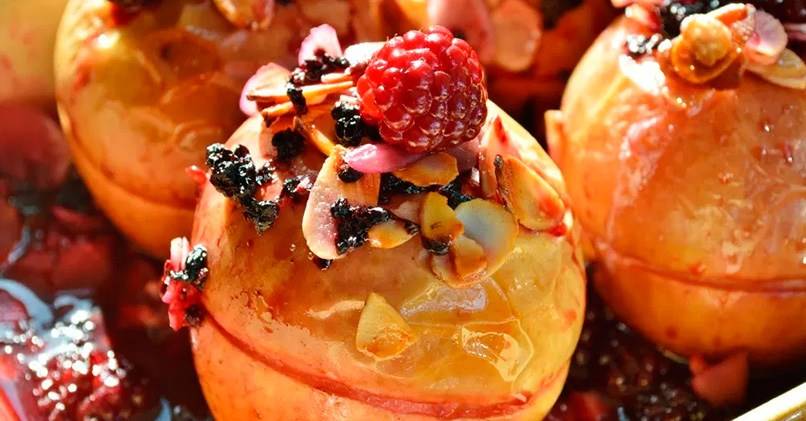 Печеные яблоки очень вкусны теплыми и становятся нежнейшим десертом, когда постоят в холодильнике. Украсьте их сверху сахарной пудрой, ягодами и ореховыми слайсами.