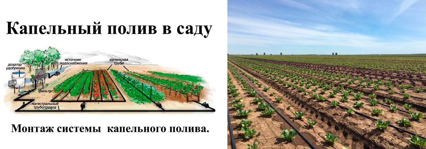 Капельный полив применяют на огородах, в теплицах. Наиболее эффективен он при выращивании овощей и плодовых