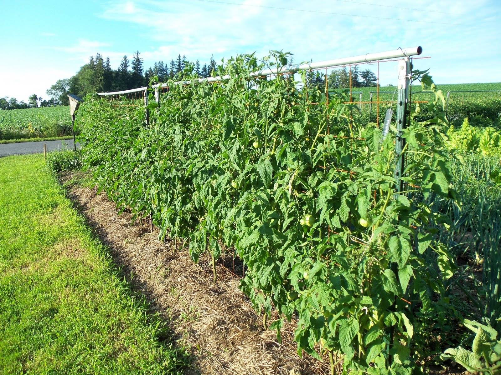 Схема, по которой высаживают рассаду, определяется видом кустов, который планируется выращивать на огороде. Если стебли сильно ветвятся, оптимальное расстояние — от 30 до 40 см. Для слабоветвящихся достаточно 25-30 см. Шпалеры располагают в шаге 1 м друг от друга. Это расстояние уменьшать не рекомендуется, но все зависит от того, как много свободного пространства на дачном участке.