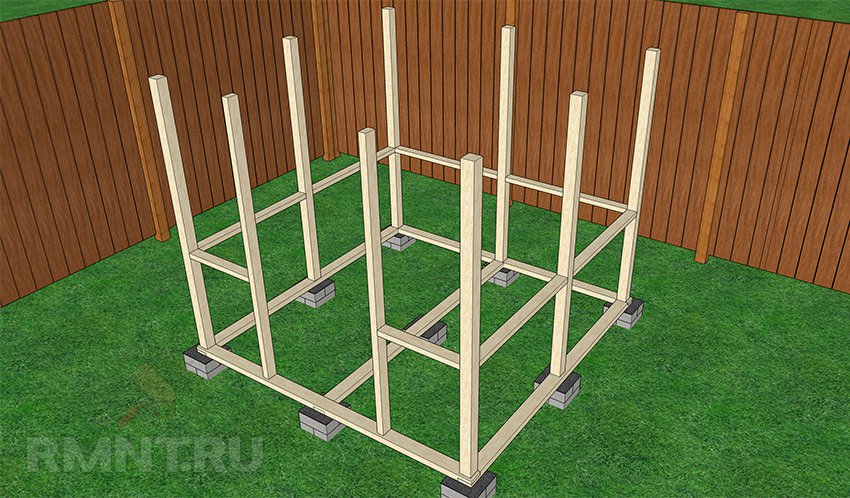 - Следующий шаг, крепление боковых перекладин, к тем, которые вы установили на столбах.