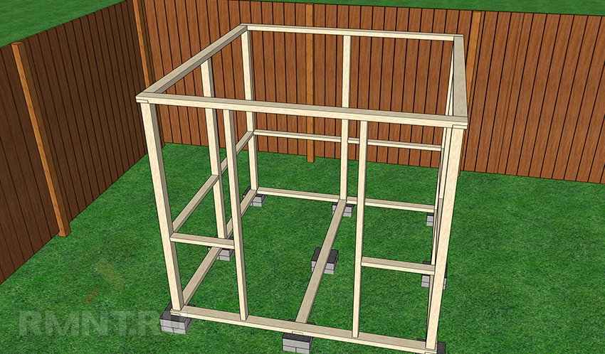 - Теперь пришло время поставить опоры крыши, которые помогут удерживать вес. Поместите поддержку примерно через каждые 55 см. Надежно закрепите опоры винтами.