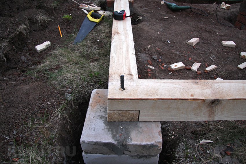 - Далее установите деревянные балки и металлические опоры в бетон под углом 90 градусов.