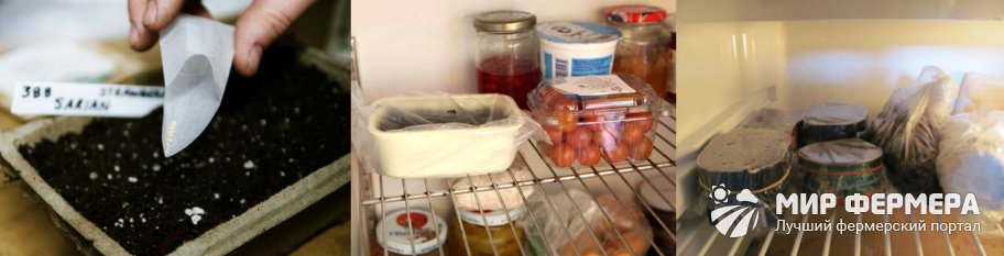 В домашних условиях стратификацию проводят в холодильнике, в погребе, в подвале, на балконе, на улице в снегу. Главным условием является соблюдение температуры в пределах от 0º до +5ºС. Без холодной стратификации семечки, конечно же, дадут всходы, но процент всхожести будет гораздо ниже.