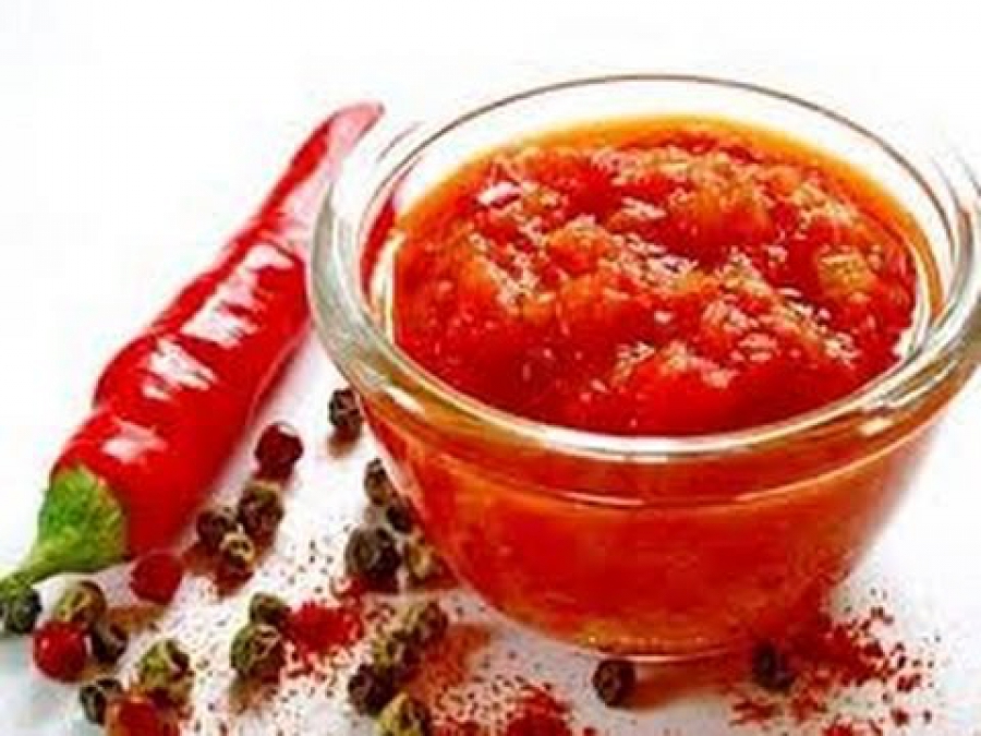 Это душистая, вкусная приправа на все жизненные случаи. Для приготовления используют томаты, сладкий и горький перцы, чеснок и корень хрена. К ним добавляют соль, сахар и уксус.