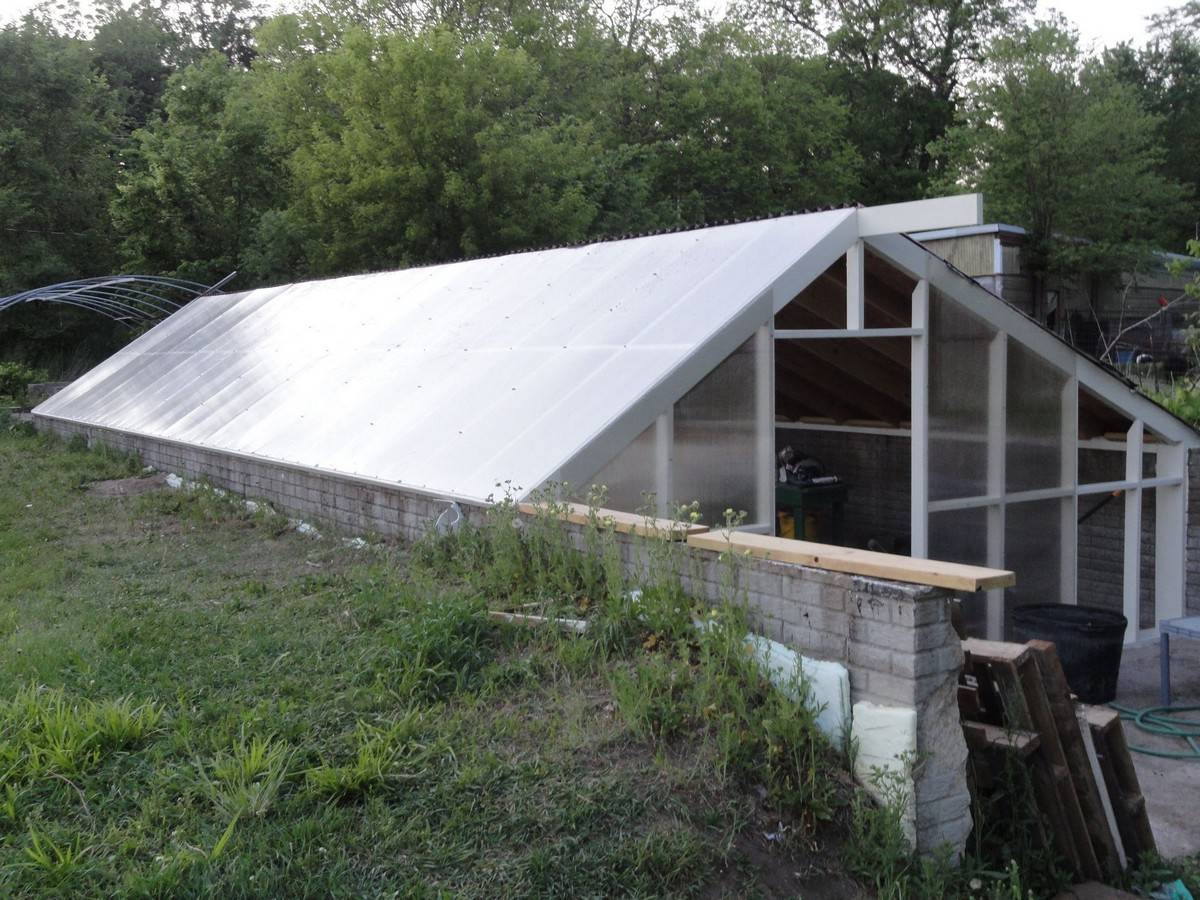 Крыша может быть выполнена в такой же конструкции, как и у скандинавского вегетария. Так потери солнечного света будут сведены к минимуму. Такие парники могут быть глубиной до 6 метров и используются для выращивания южных культур даже в зимний период средней климатической полосы.