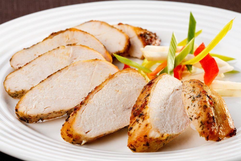 Смешать пару ложек оливкового масла, сушеный базилик, тимьян, розмарин, рубленый чеснок, соль, перец. Куриную грудку смазать полученной смесью и завернуть в фольгу. Запекать сорок пять минут.