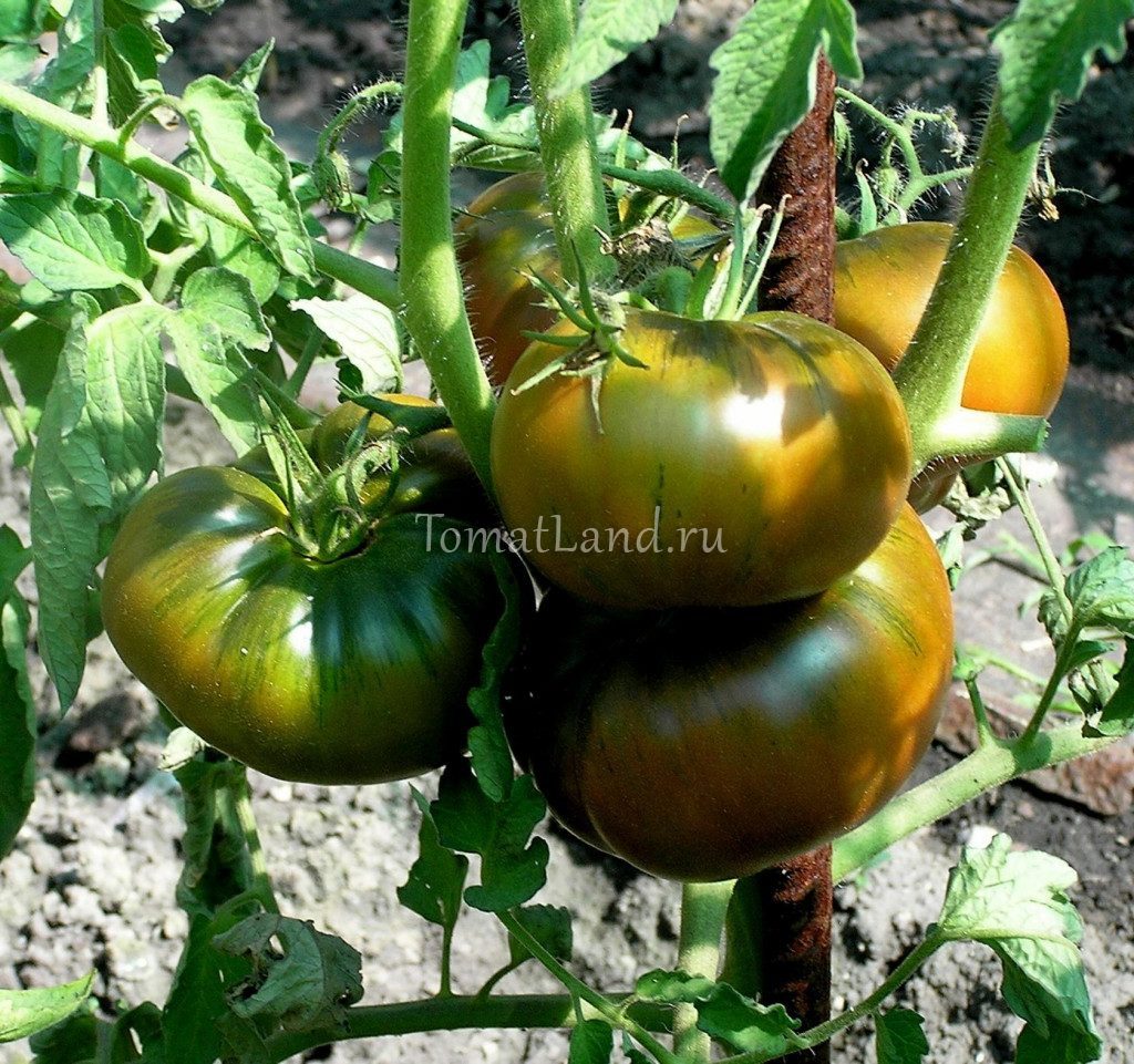 - Форма плода напоминает слегка уплощенную сферу. Ягоды окрашены в темные оттенки коричневого цвета. Плотность томата достаточно высокая, хотя внутри плода находится 6—7 семенных камер.