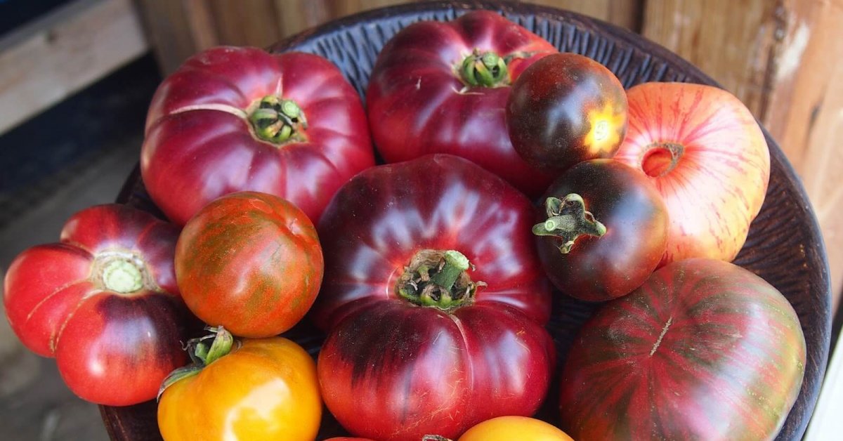 Окраска плодов у помидоров серии Гном томатный разнообразна, и это можно увидеть на фото