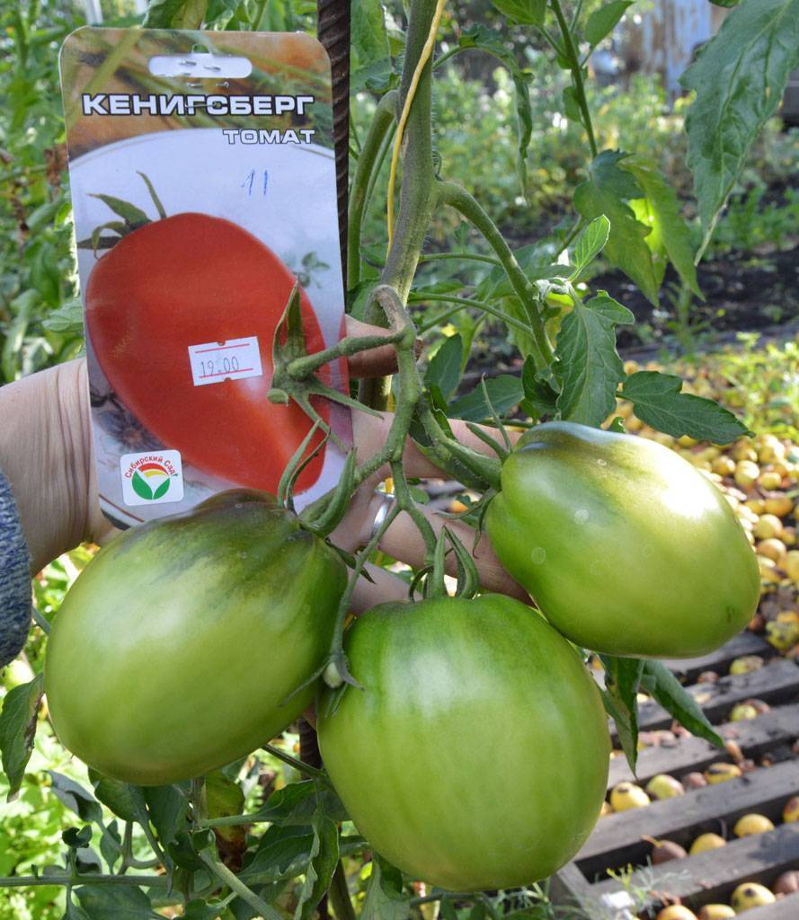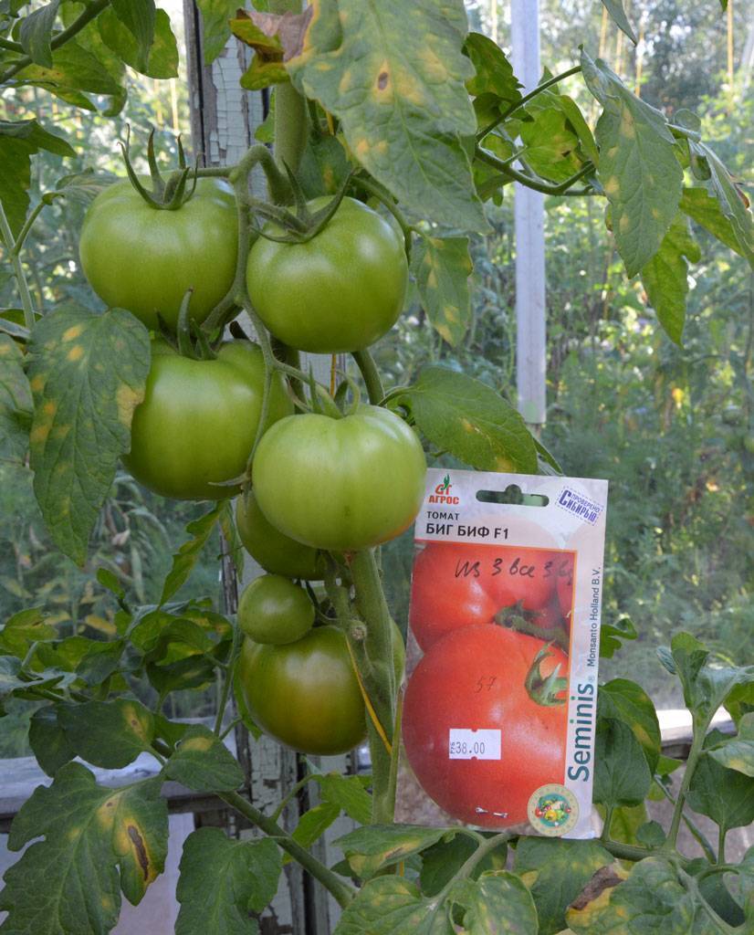 Был заявлен как высокорослый, но в открытом грунте показал себя невысоким – среднерослым до 1м. Урожай удивил. Очень крупные, тяжелые, сахарные. На одной кисти от 4 до 5 крупных 400гр. плодов.