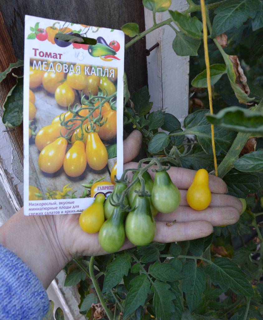 На пакете написано что будет не высокий, в теплице выдурил под 2м. Кистей с плодами было не так уж много, как хотелось бы. Вкус плодов на самом деле медовый. Понравились.