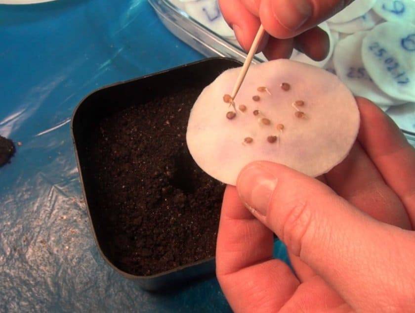 В контейнер с герметичной крышкой укладывается сложенный в несколько слоев и смоченный в воде кусок ткани из хлопка. На нем раскладываются семена, это закрывается крышкой и помещается в теплое место (26-28 градусов).