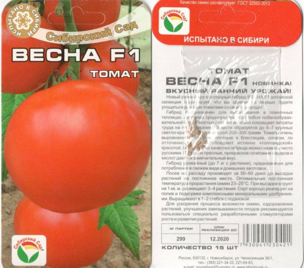 Посевной материал для подготовки рассады необходимо приобретать каждый раз заново, поскольку гибриды не воспроизводят родительские признаки — растения, выращенные из самостоятельно собранных семян томата Весна, не наследуют отличные качества сорта.
