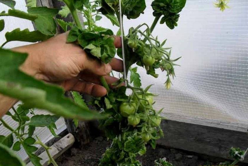 - при выращивании в открытом грунте в конце июля или в первой половине августа (в зависимости от климата в регионе) стебель прищипывают, чтобы уже сформировавшиеся томаты успели дозреть до заморозков.