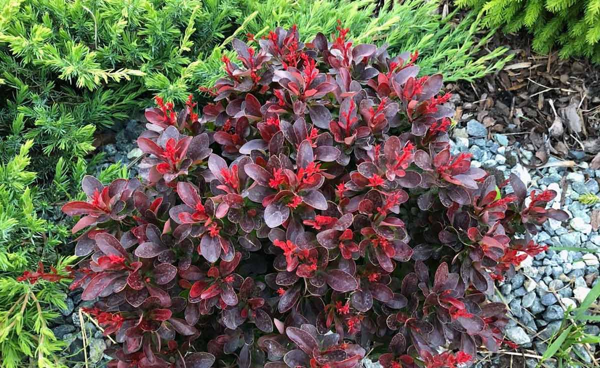Осенью его зеленые листья меняют цвет, и этот карликовый куст приобретает красный насыщенный цвет. Прекрасно переносит обрезку и формировку, устойчив к морозам и загрязнениям.